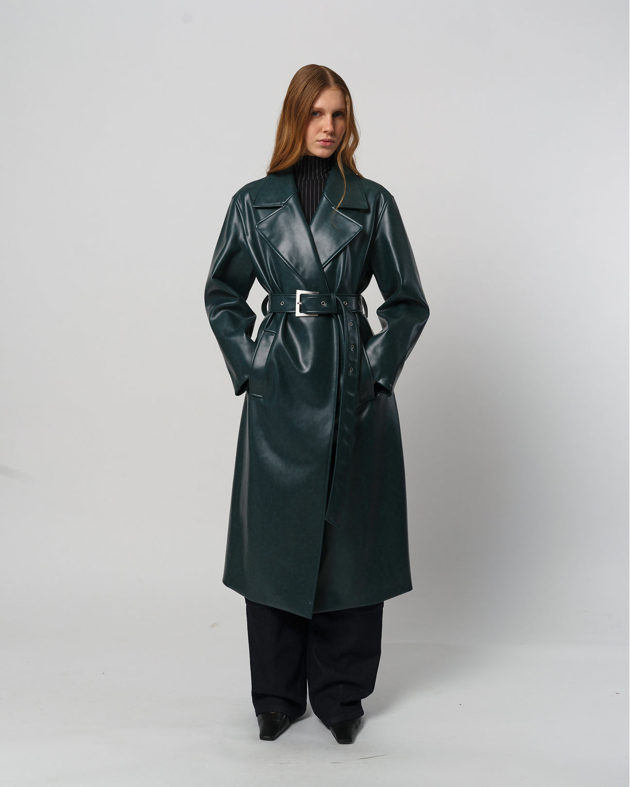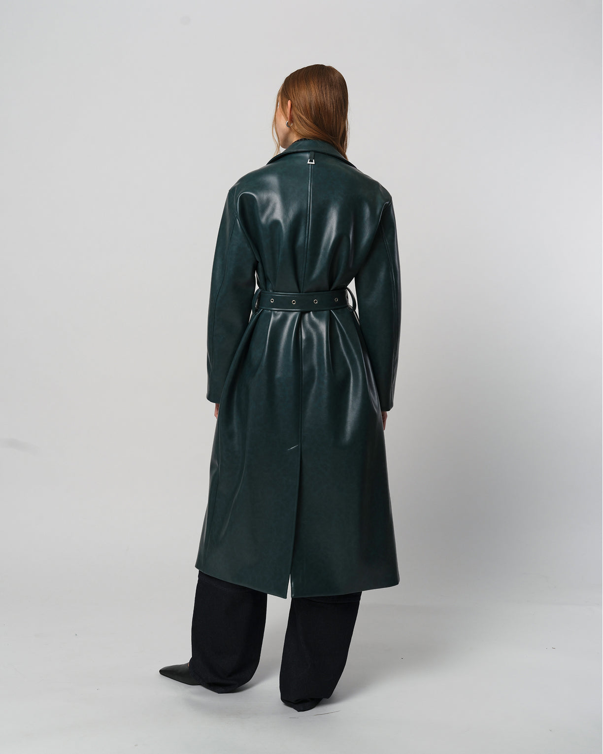 SANS Leather belted trench coat.
