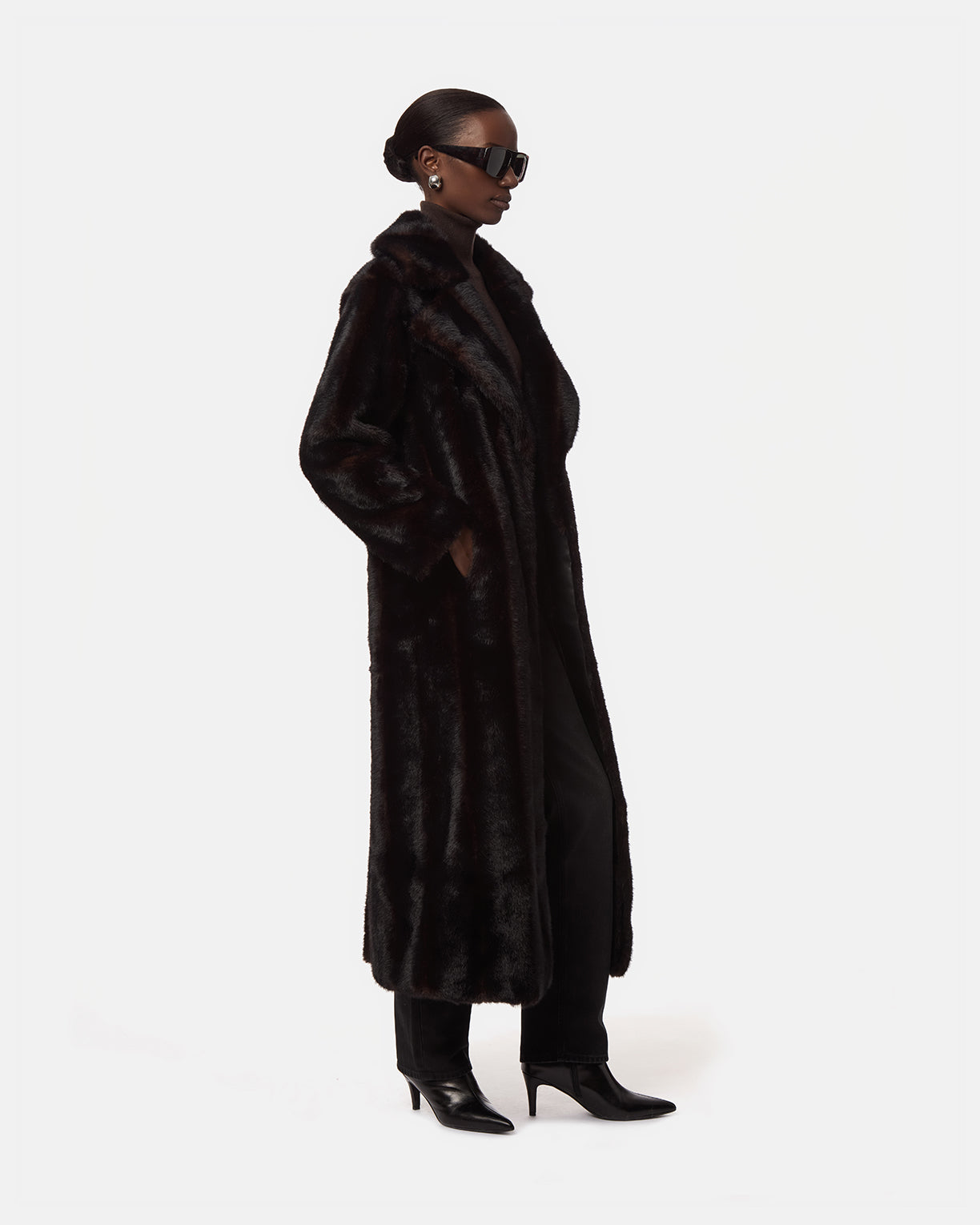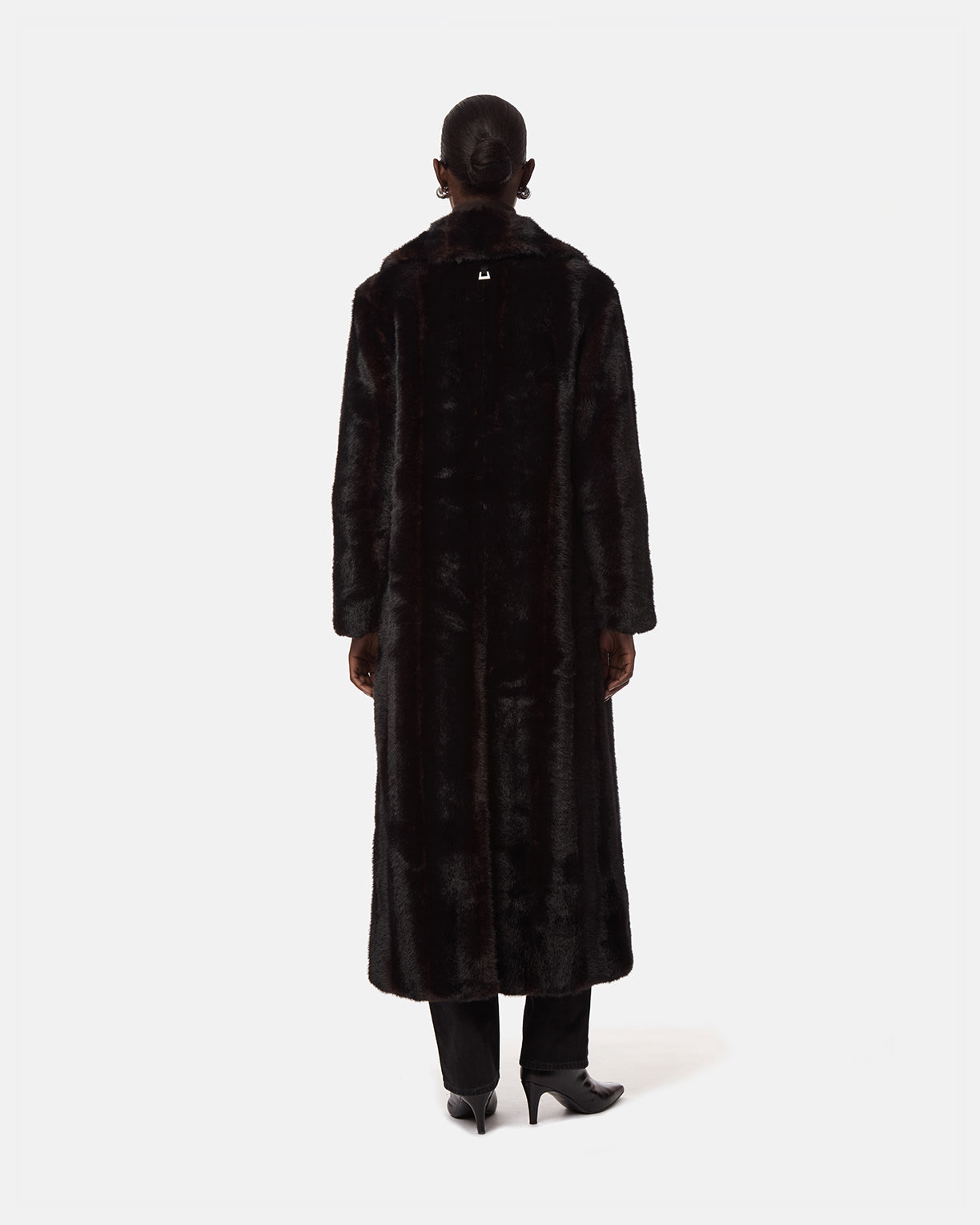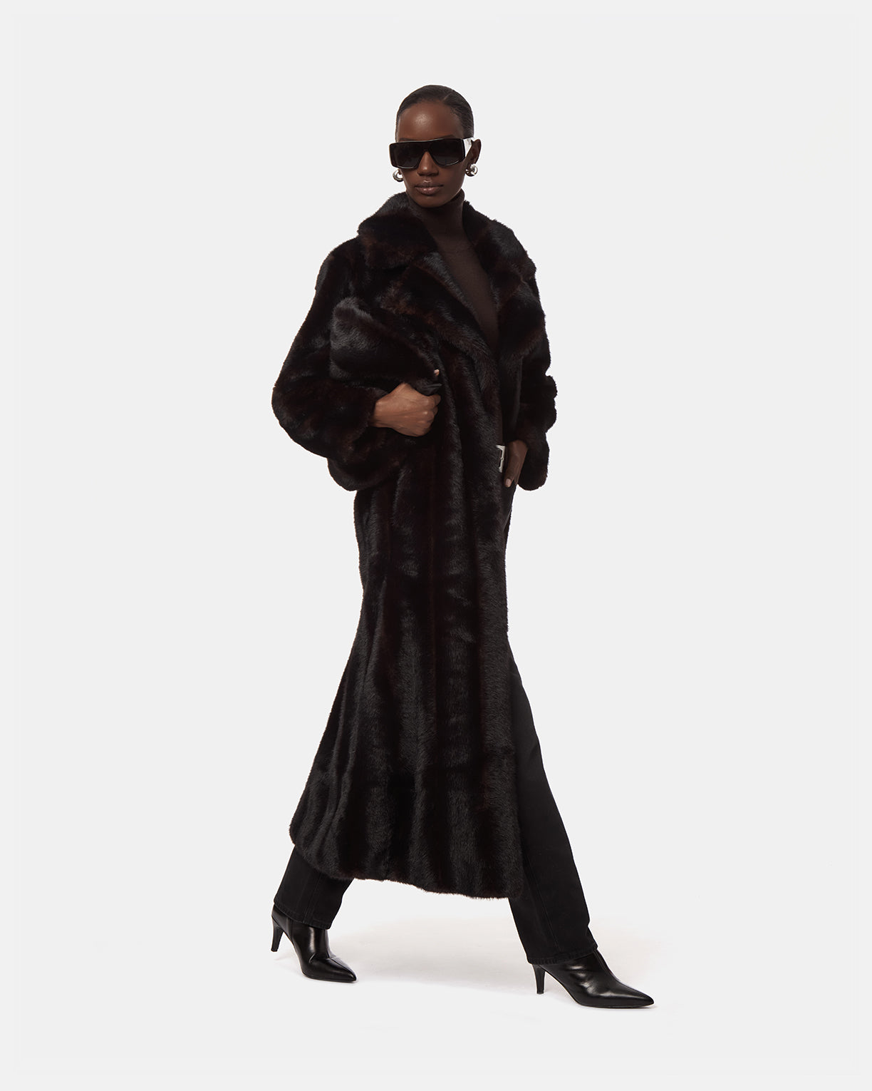 Shaved mink faux fur maxi coat.