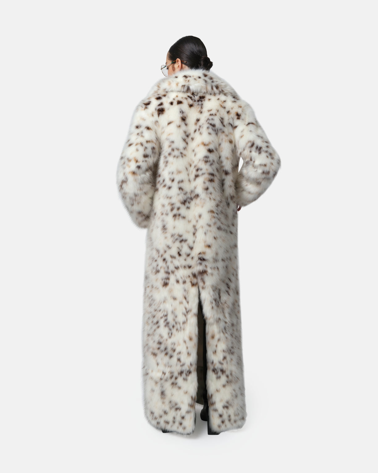 Snow leopard sable faux fur maxi coat.