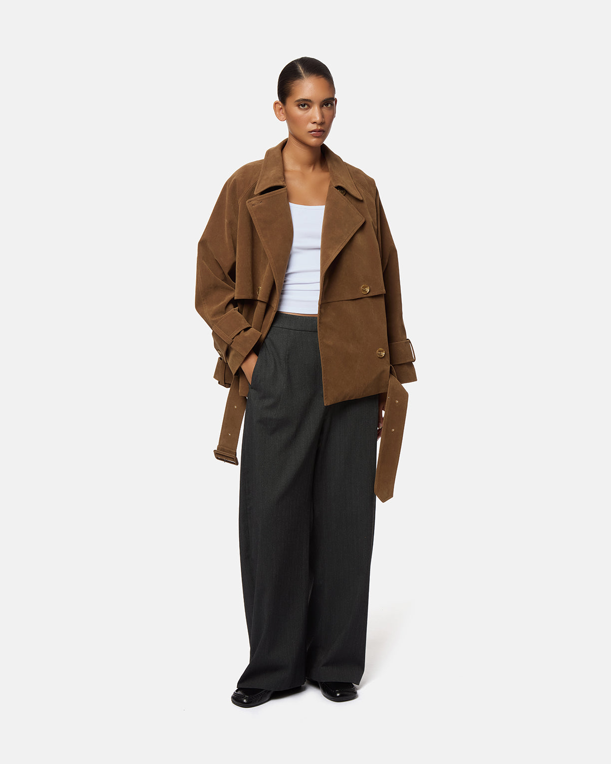 • Transitional-weight SANS Suede fabric combining structure with softness