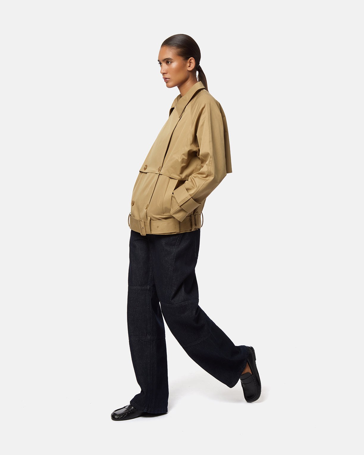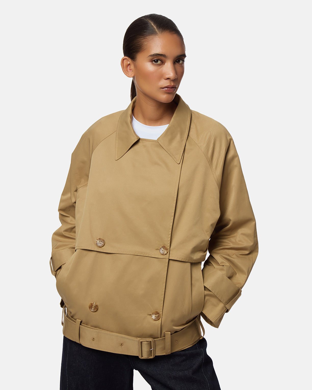 Midweight cotton blend short trench coat