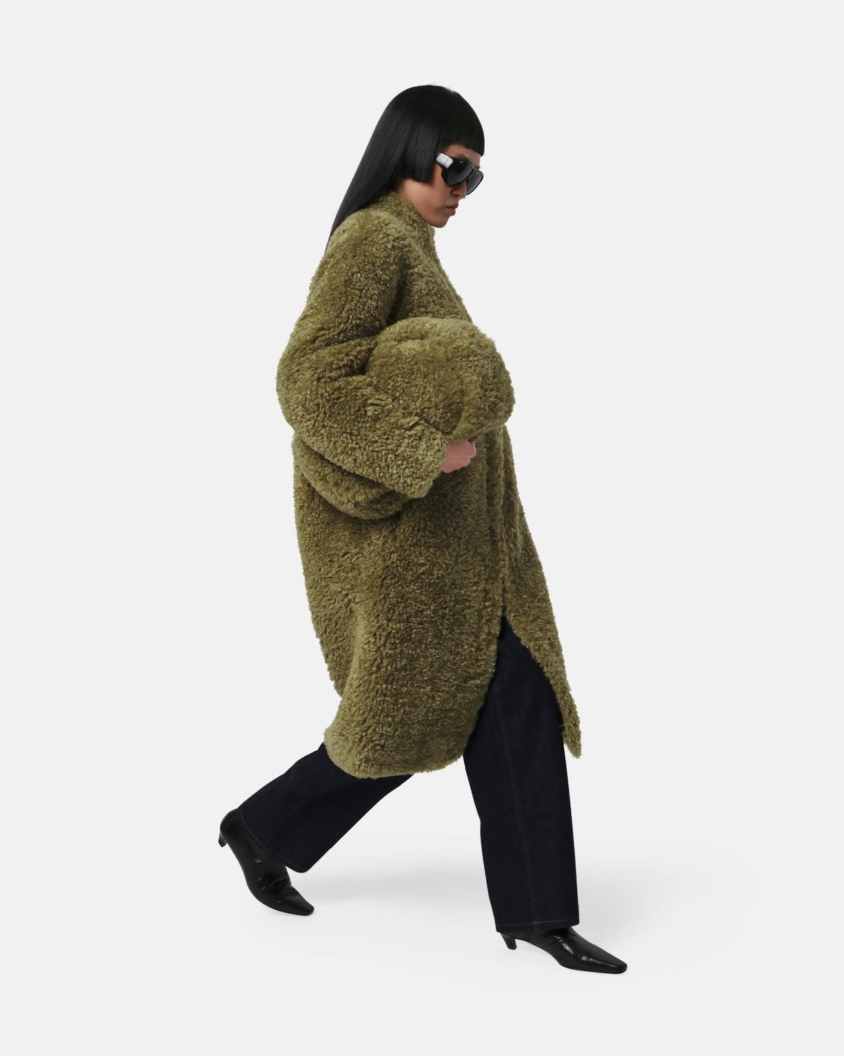 Recycled BOUCLETTE faux shearling cocoon coat.