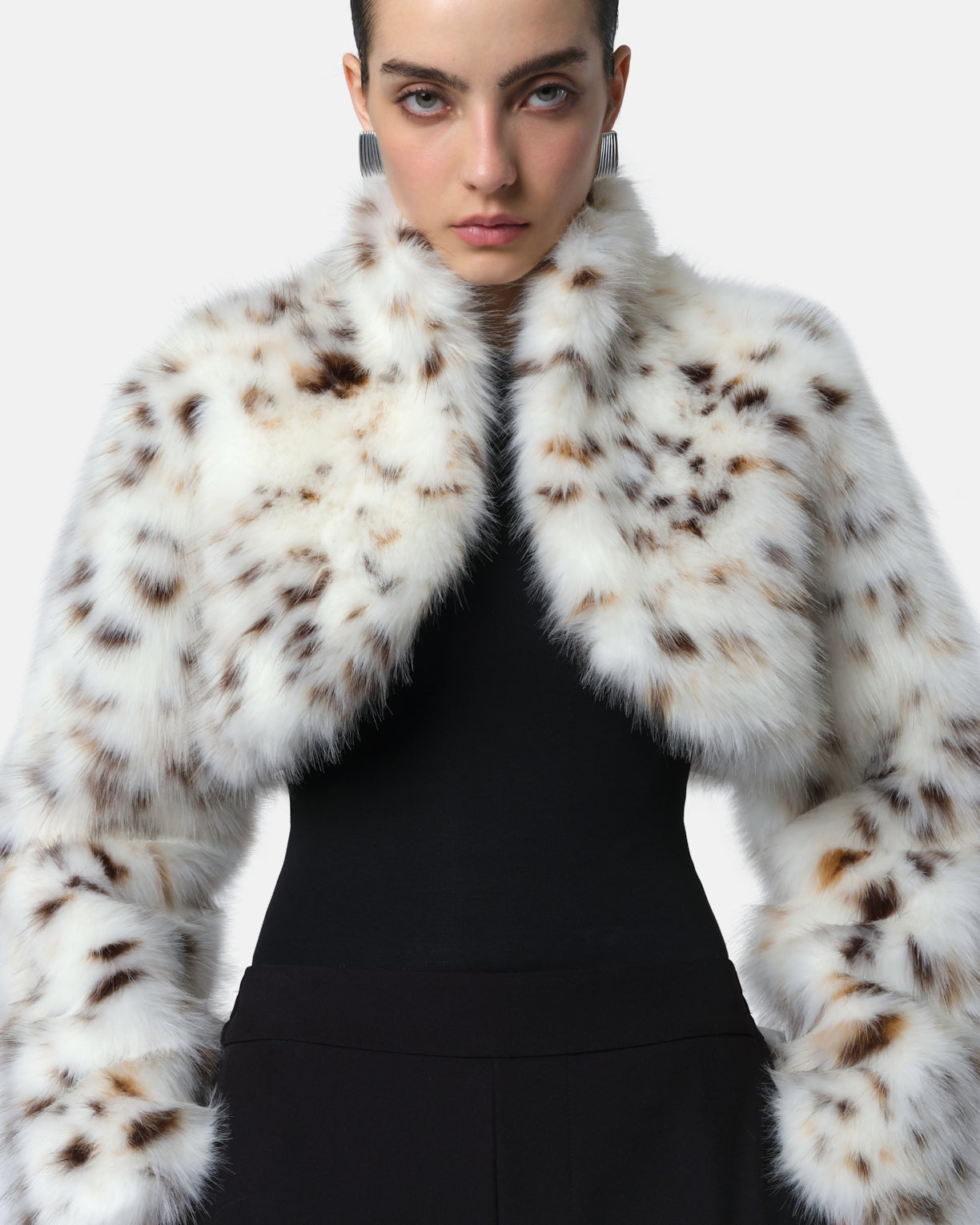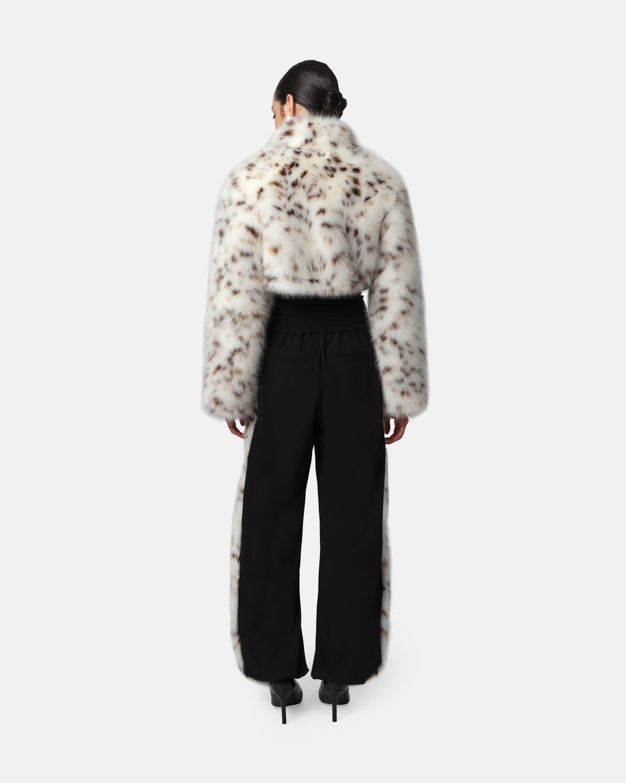 • Recycled faux snow leopard sable fur with SANS Leather paneling & 100% recycled lining.