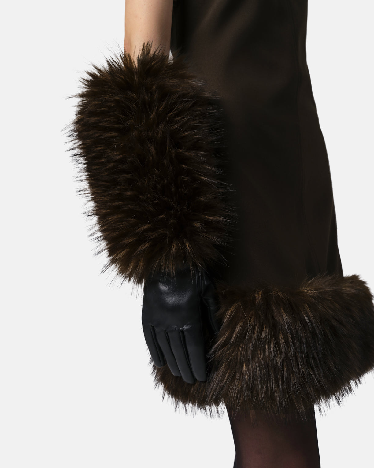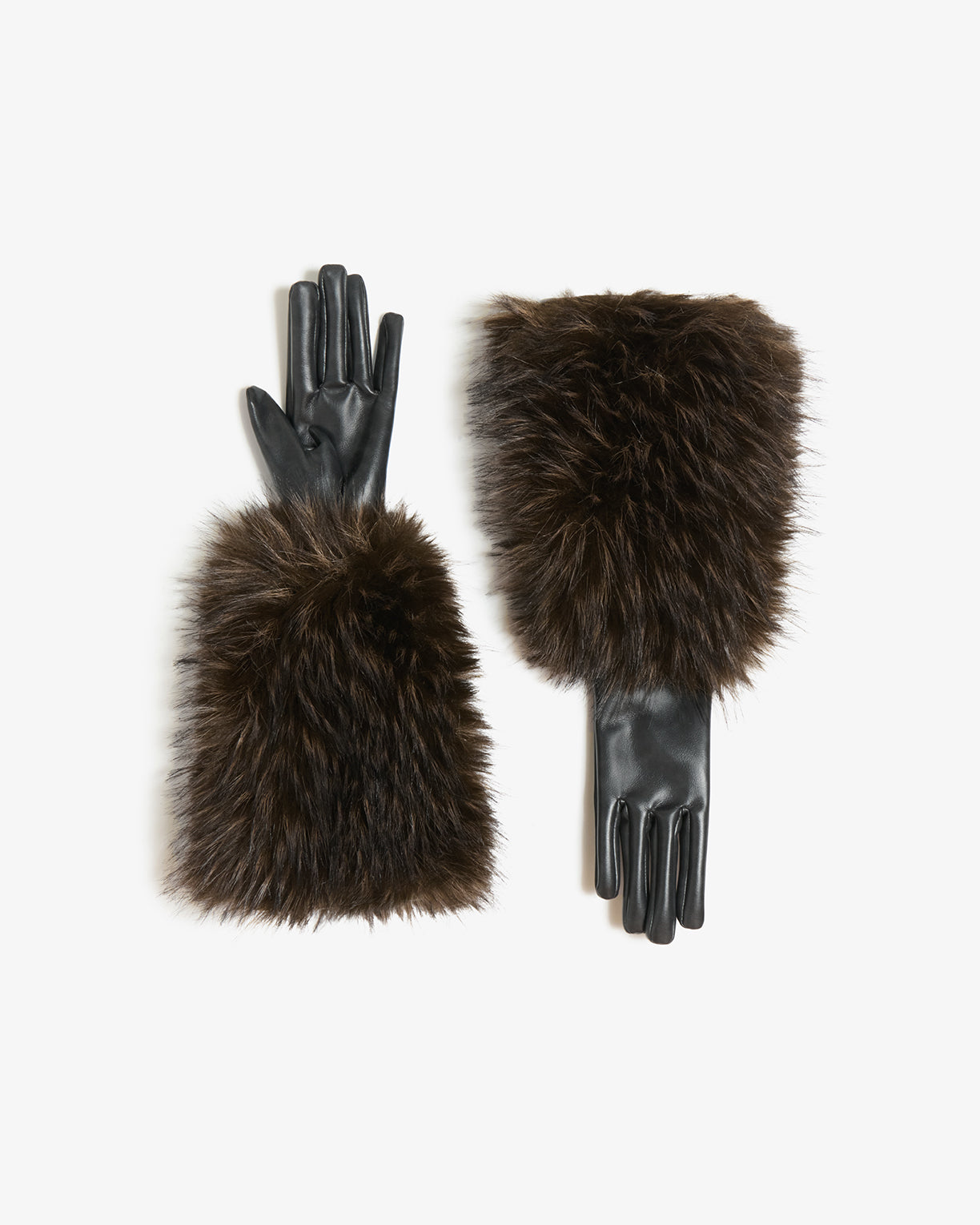 • SANS Leather with recycled tipped fox faux fur cuff and microfleece lining.